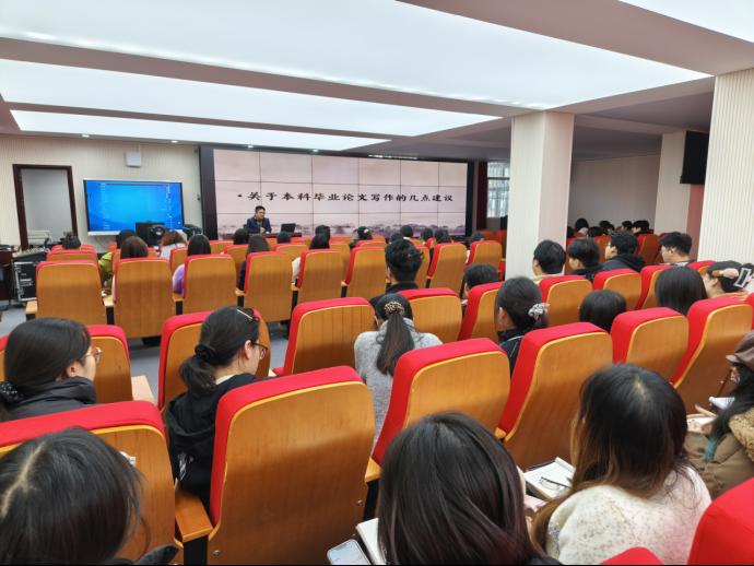 讲座正式开始前,赵婉华副院长围绕思想政治教育专业毕业论文的特殊性与重要性发表讲话。她着重强调,思政专业毕业论文不仅是检验学生四年专业学习成果的核心载体,更是培养学生运用马克思主义立场、观点、方法分析和解决现实问题能力的关键环节。赵婉华副院长提出,论文写作需紧扣“立德树人”根本任务,充分体现思政学科的思想性、理论性与实践性,要求全体师生以严谨、认真的态度,高质量落实论文写作与指导各项工作,为后续论文工作开展定下严谨务实的基调。