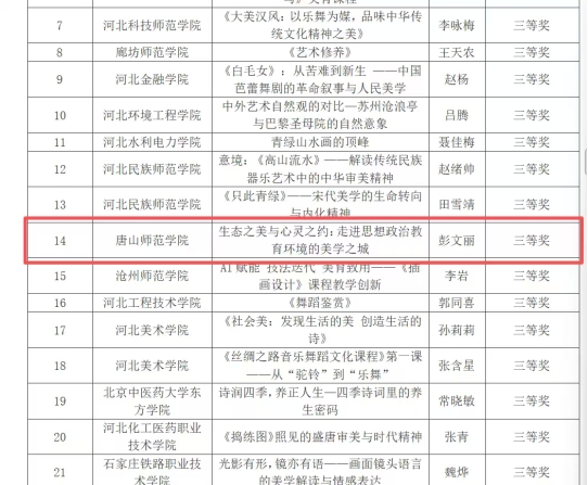 近日,河北省教育厅公布2025年高校美育教师教学能力大赛评选结果,bv伟德国际1946教师彭文丽的授课作品《生态之美与心灵之约:走进思想政治教育环境的美学之城》获得三等奖。这一成绩不仅是教师的个人荣誉,更折射出当前美育与思想政治教育深度融合的创新趋势。