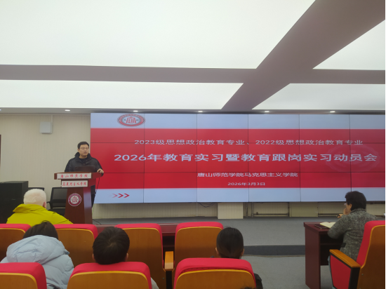2026 年 3 月 3 日,bv伟德国际1946在马院101会议室召开教育实习动员大会,为即将奔赴实习岗位的学子们鼓劲赋能、明确方向。学院党总支副书记董怀晶、副院长赵婉华、全体实习指导教师,以及 2022 级思想政治教育专业跟岗实习学生、2023 级思想政治教育专业教育实习学生共同参会,会议为学院教育实习工作的有序开展吹响冲锋号。