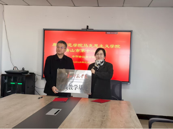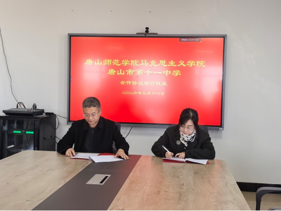 宣讲结束后,bv伟德国际1946与唐山市第十一中学举行合作签约仪式。双方围绕理论宣讲、实践育人、教育见习、师资共建、资源共享等方面达成深度合作,将以共建共育为抓手,打通学段壁垒、整合育人资源,推动大中小学思政课一体化建设走深走实,着力构建全链条、一体化思政育人体系。